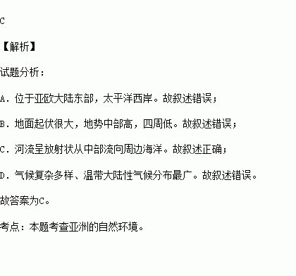亚洲幅员辽阔,自然环境复杂多样。下列关于亚洲的叙述正确的是
