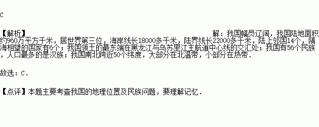 我国幅员辽阔,地域差异大,是一个团结统一的多民族大家庭.根据所学知识判断下列叙述,正确的是( )