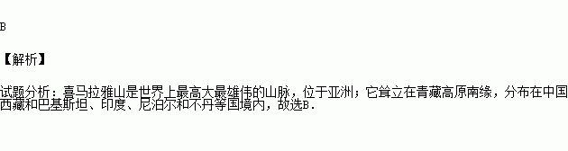 B、喜马拉雅山脉、亚洲