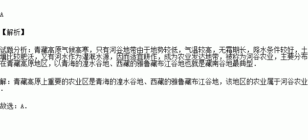 B.乙:青藏地区的农业主要分布在广阔的高原地带