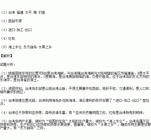 2.台湾素有“水果之乡”的美称,盛产的热带、亚热带水果有