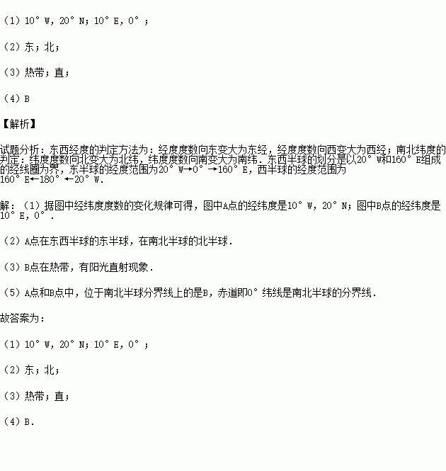 (1)图中A点的位置(经、纬度): ;图中B点的位置(经、纬度): .