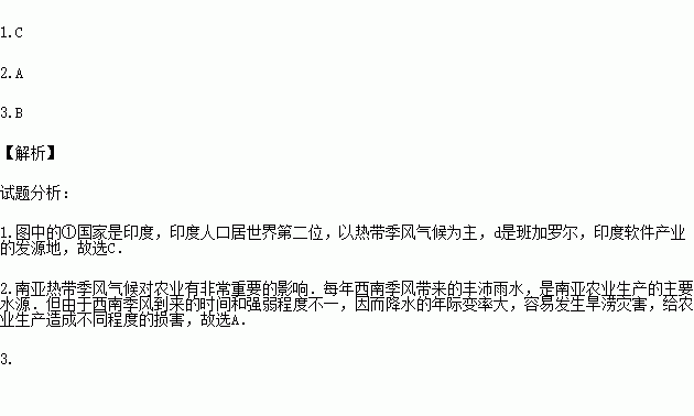 3.目前①国的 发展迅速,印度因此被形象地称为“世界办公室”。