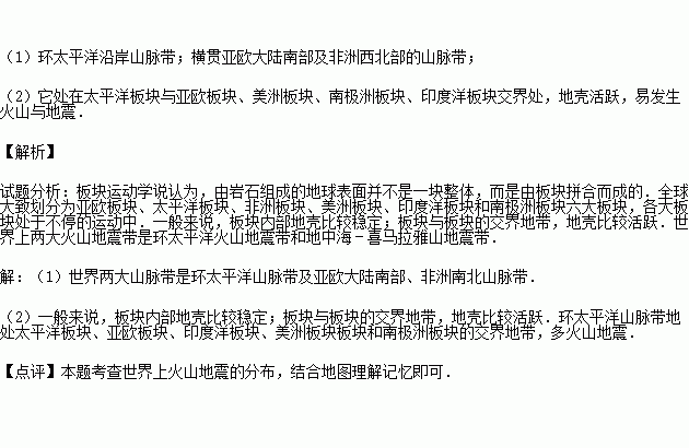 (2)尝试用板块构造学说来解释:环太平洋沿岸山脉带是世界地震和火山活动最剧烈的地带的原因 .