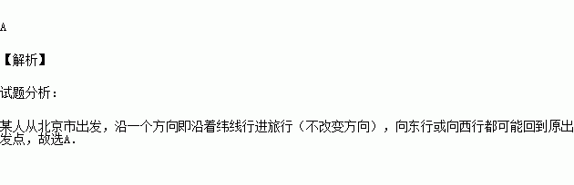 一个人从北京故宫出发,沿着一个方向旅行(方向不变),可能回到原出发点的是( )