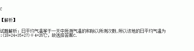 某气象站在一天的2 时、8 时、14 时、20 时,测得的气温依次是18℃、24℃、35℃、27℃,该地当日平均气温是