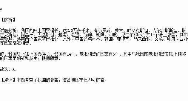 (5)我国疆界绵长,陆上国界线长达2.2万多千米,相邻的国家有14个,其中⑥是 (国家).