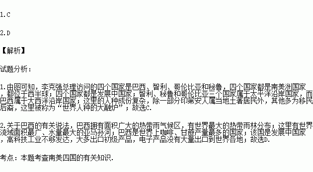 1.对李总理出访的四国描述不正确的是( )