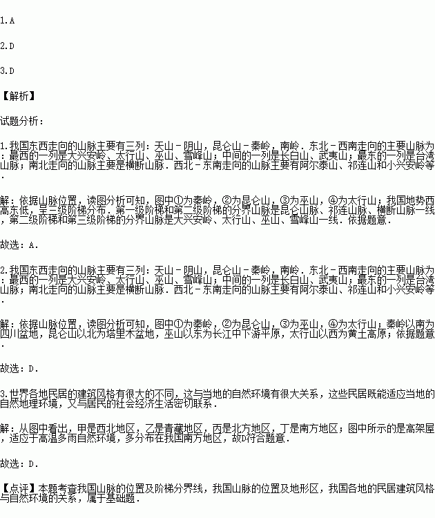 1.ͼÖТ٢ڢۢÜɽÂöÖв»ÔÚÎÒ¹úÈý¼¶½×ÌÝ·Ö½çÏßÉϵÄÊÇ£¨ £©