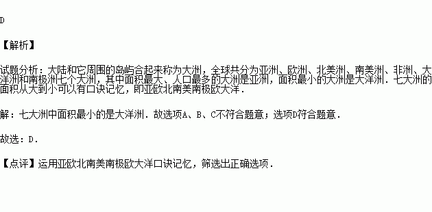 C.大洋洲 D.南极洲