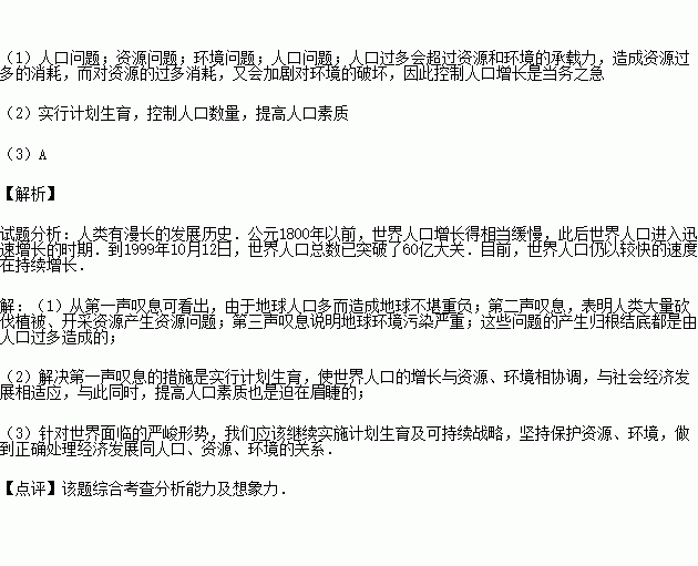 (1)从三声叹息可以看出世界面临的三大问题分别是 _______、_______、_______.你认为哪一问题是首要问题? 人口问_______题,请你说明理由:__________________________________________________。