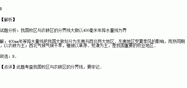 A.800mm年等降水量线 B.400mm年等降水量线
