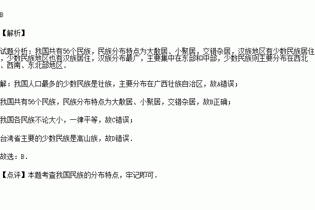 B.民族分布的特点是各民族大散居、小聚居、交错杂居