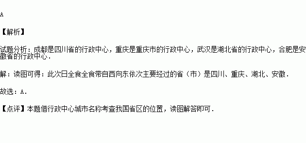 如图为2009年7月22日上午8时左右发生的日全食全食带示意图.此次日全食全食带自西向东依次主要经过的省(市)是( )