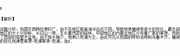 4.图中B区域自东向西降水逐渐减少,自然景观变化规律是( )