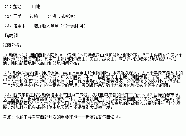 (3)西气东输工程的起点轮南位于 盆地,该工程的实施给西部地区带来的好处有 (写一条即可)。