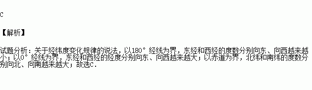 A.以180°经线为界,东经和西经的度数分别向东、向西越来越大