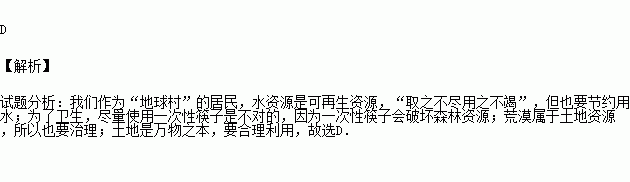 A.水资源是可再生资源,“取之不尽用之不竭”,所以没必要节约用水