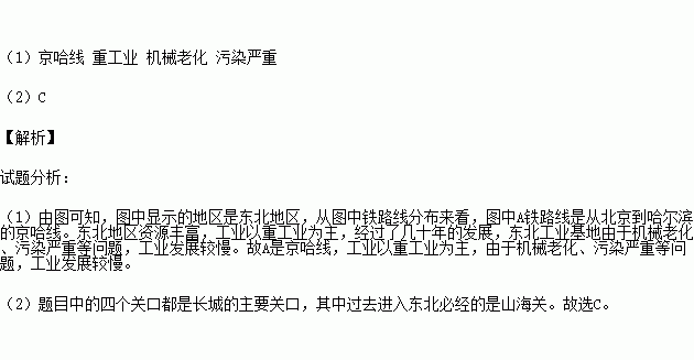 (2)过去华北地区人们闯关东就是进入本地区,必经的关隘是( )