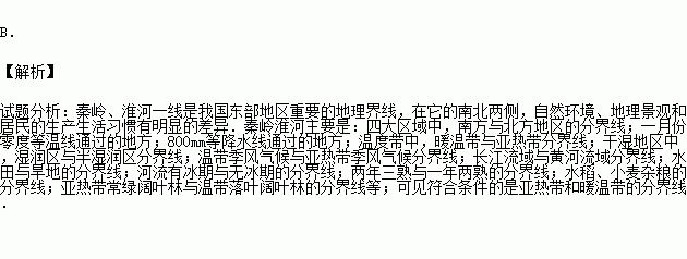 秦岭-淮河是我国南方、北方的主要分界线,它还是( )