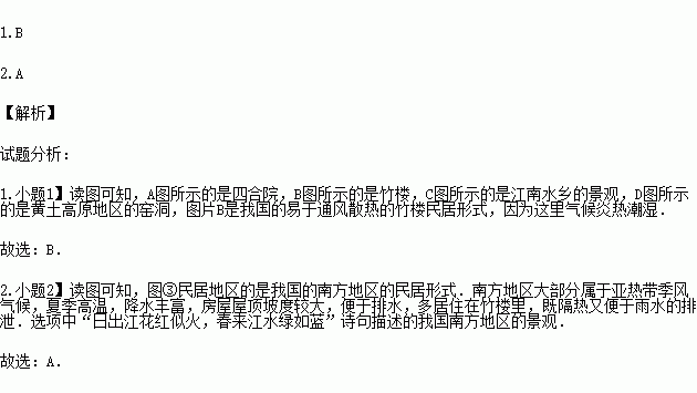 1.四种民居所在地区,气候最炎热潮湿的是( )