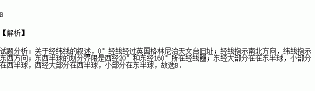 A.0°纬线经过英国格林尼治天文台旧址