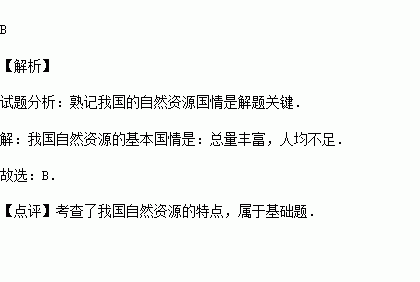 A.总量丰富,人均占有量也大 B.总量丰富,人均占有量不足