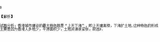 香港城市建设的最大特色就是“上天下海”,即上天建高楼,下海扩土地,这种特色的形成主要是因为香港( )
