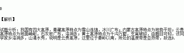 A.青藏高原、高原气候区 B.云贵高原、亚热带