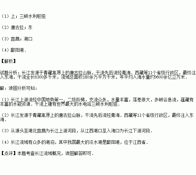 (4)长江流域有众多的湖泊,其中我国最大的淡水湖是 .