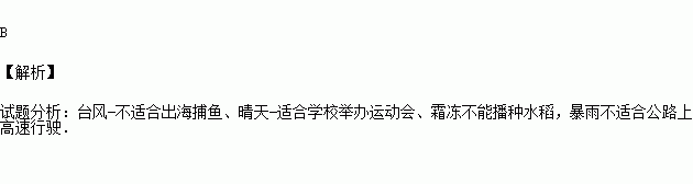 下列天气符号的判读与人们所进行的活动搭配均正确的是