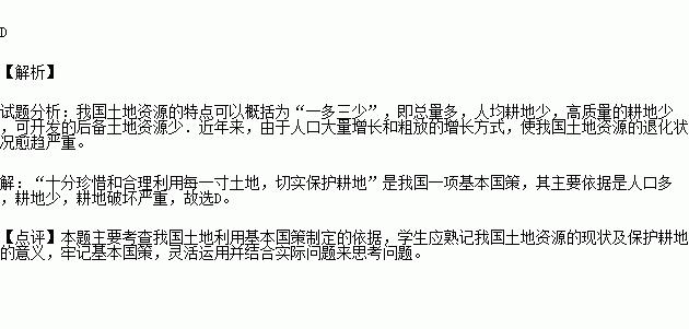我国把“十分珍惜、合理利用每一寸土地和切实保护耕地”作为一项基本国策,主要原因是我国( )