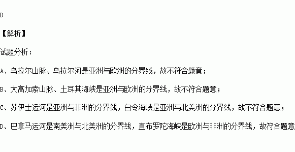 A.乌拉尔山、乌拉尔河 B.大高加索山、土耳其海峡