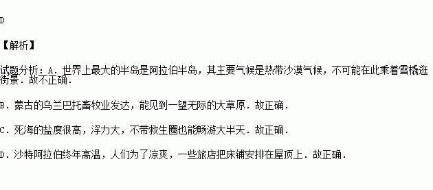 D.在沙特阿拉伯,一些旅店把床铺安排在屋顶上