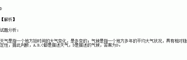 下列现象属于“气候”的是( )