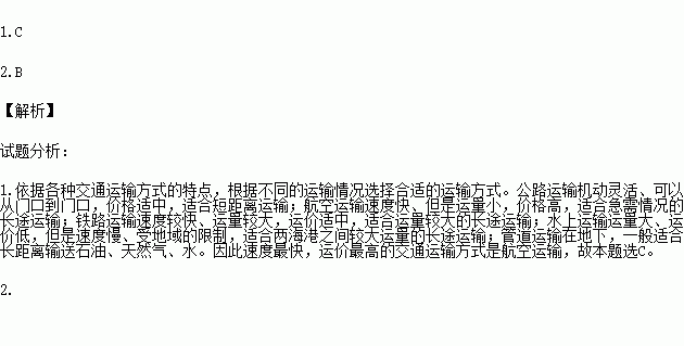 1.速度最快,运价最高的交通运输方式是( )