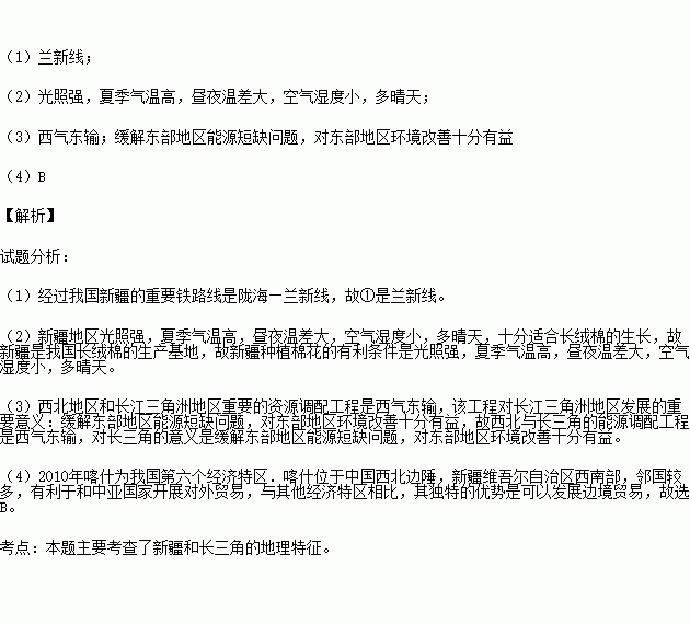 (2)新疆是我国唯一的长绒棉产地,分析其种植棉花的有利气候条件.