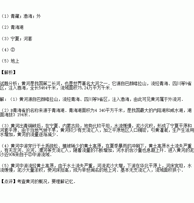 £¨1£©»ÆºÓ·¢Ô´ÓÚ ¸ßÔ£¬×¢ÈëµÄº£ÓòA £¬Óɴ˿ɼû»ÆºÓÊôÓÚ Á÷ºÓ£¨ÄÚ»òÍ⣩£®