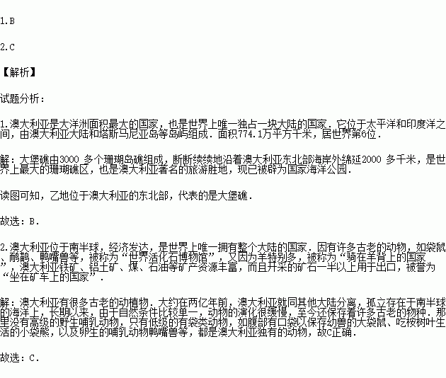 1.图中代表大堡礁的是( )