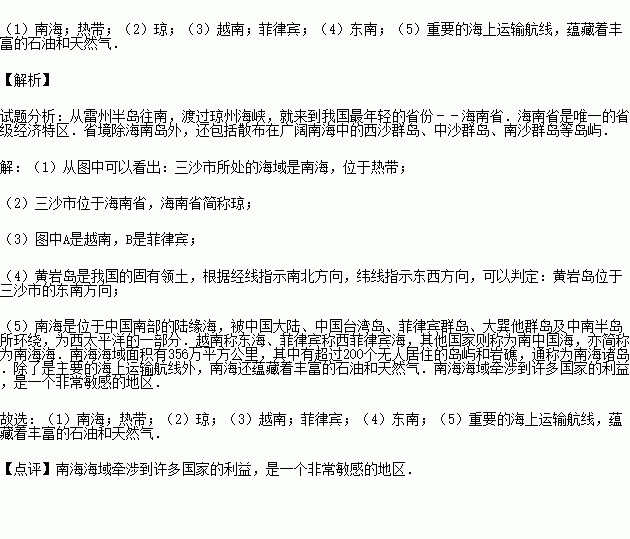 (1)三沙市所处的海域是 ,所处的温度带是 .