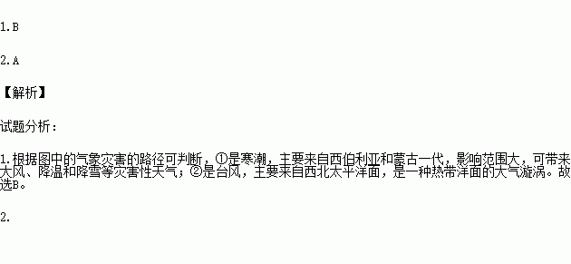 1.图中①代表的气象灾害是( )