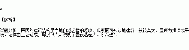 下图是亚洲中纬度地区一种适应环境、别具地方特色的民居,称为土拱。这种民居一般较高大,屋顶为拱顶或平顶,墙体由土坯砌成,厚度很大。这种民居适应的自然环境是