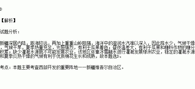 B.夏季昼夜温差大,有利于瓜果和糖料作物的糖分积累