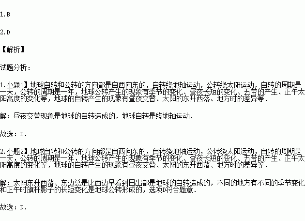 1.从图中可以看出,任何时刻,太阳光只能照亮半个地球,而我们能够感觉到昼夜交替的原因是( )