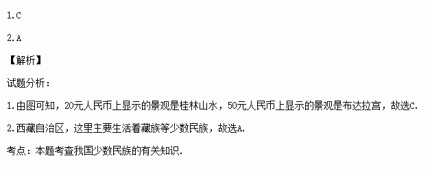 人民币不只是一张纸币,是国家的名片,还是一部地理启蒙教育图册,依人民币上所显示的景观,完成下列问题: