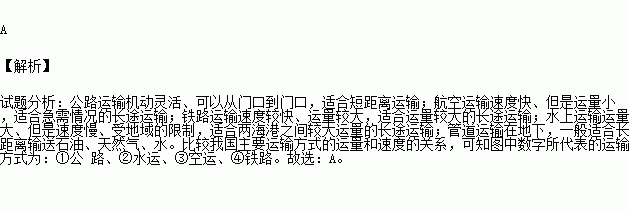 比较我国主要运输方式的运量和速度的关系,说出图中数字所代表的运输方式为