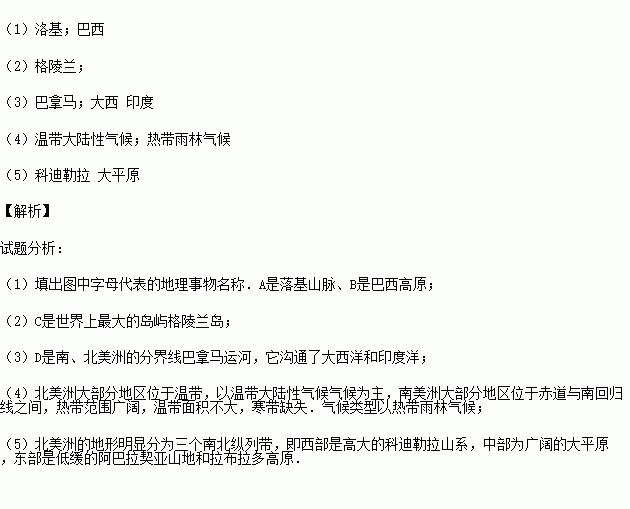 (4)从气候看,北美洲的气候类型以 为主,南美洲的气候类型以 _______ 为主.