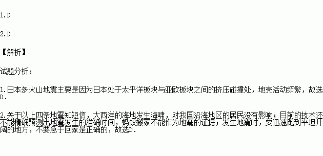 1.ÈÕ±¾¶à»ðɽµØÕðµÄÔÒòÊÇ£¨ £©