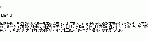 A.西双版纳——妇女喜欢穿窄袖短衣和筒裙
