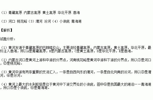 (2)写出黄河各河段的分界点名称:① ,② 。